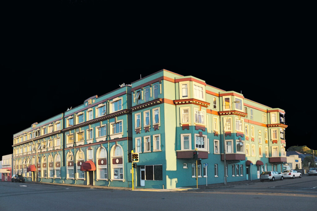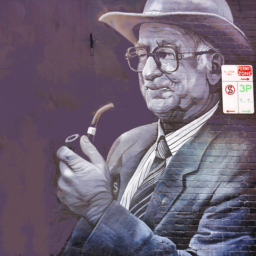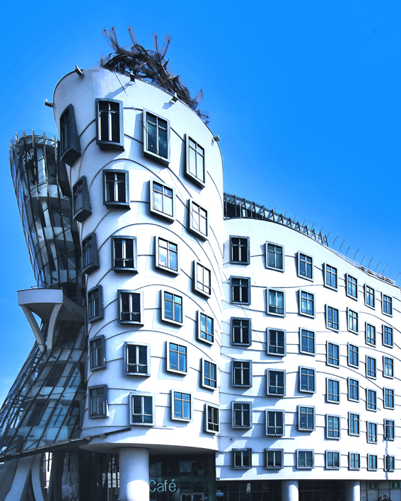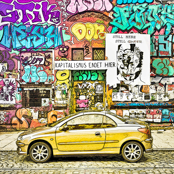 Auf den gemeinsamen Reisen fotografiert Walter Kowalczyk oftmals Gebäude. Durch die grafische Überarbeitung – ein blauer oder schwarzer Hintergrund ersetzt den Himmel – wird der Blick auf Strukturen und Farben gelenkt. Großformatige Wandbilder (murals) können einen zusätzlichen Blickfang darstellen. Der Druck auf Leinwand betont den grafischen Aspekt.